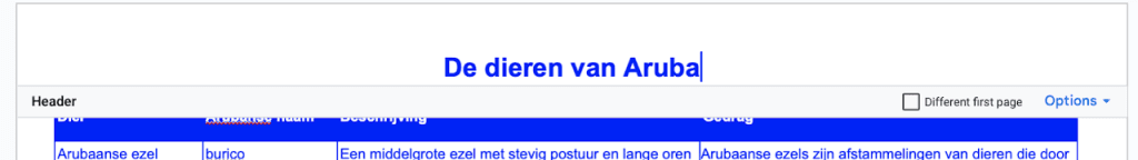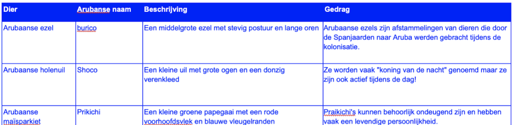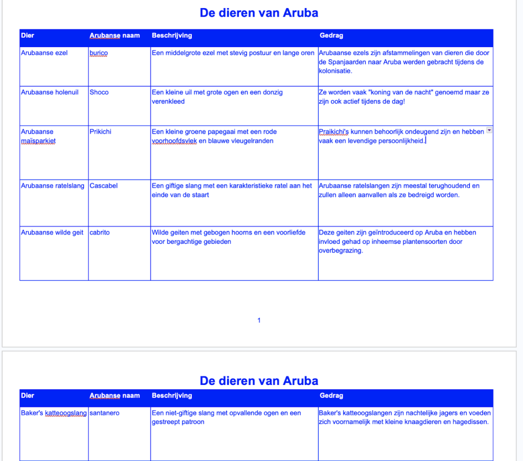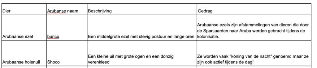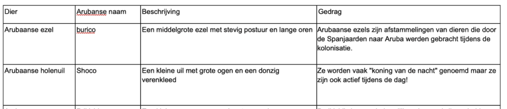 - Open het eindbestand uit de vorige opdracht met de tabel over de dieren van Aruba.