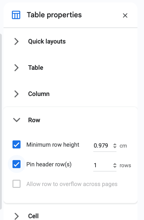 - Selecteer alleen de bovenste regel en vaerander bij Table properties – Colour de achtergrondkleur ook in donkerblauw.