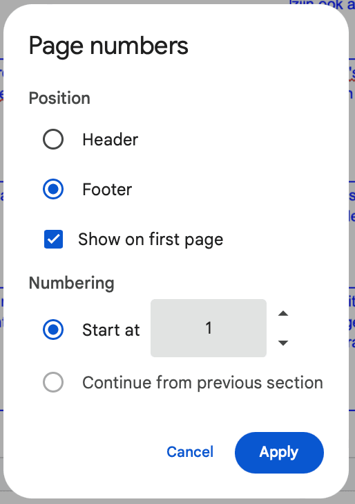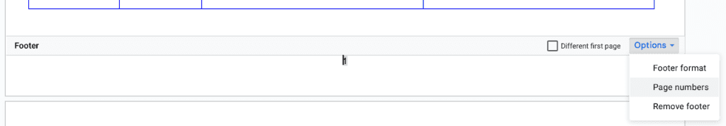 Er verschijnt een balkje met de melding Footer. - Kies bij Options voor Page numbers.