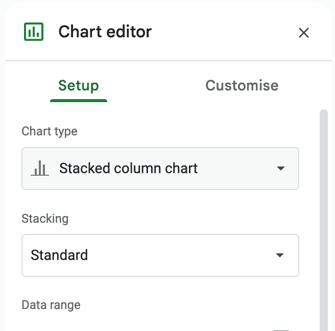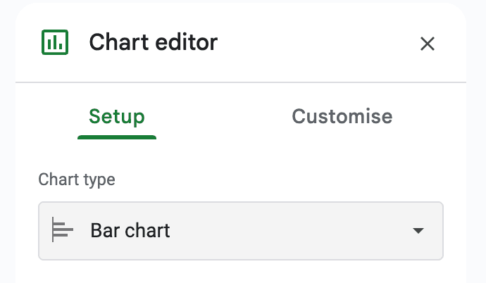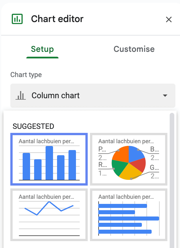 Aan de rechterkant van je scherm zie je de Chart editor. - Kies in de chart-editor de optie Column chart.