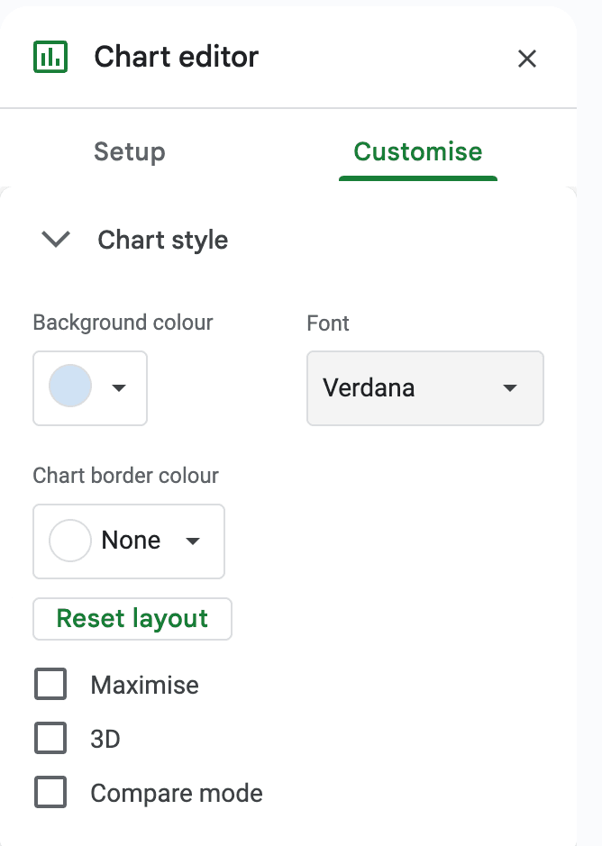 - Klik op de tab Customize en open het onderdeel Chart style.