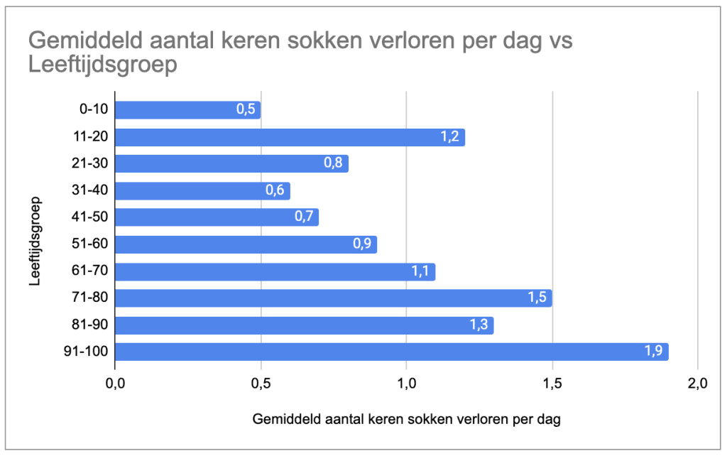 Gemiddeld aantal keren dat mensen per dag hun sokken verliezen, gesorteerd op leeftijdsgroep