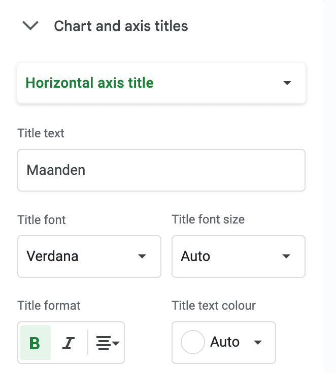 - Pas de Title en de Vertical axis title aan als in het voorbeeld.