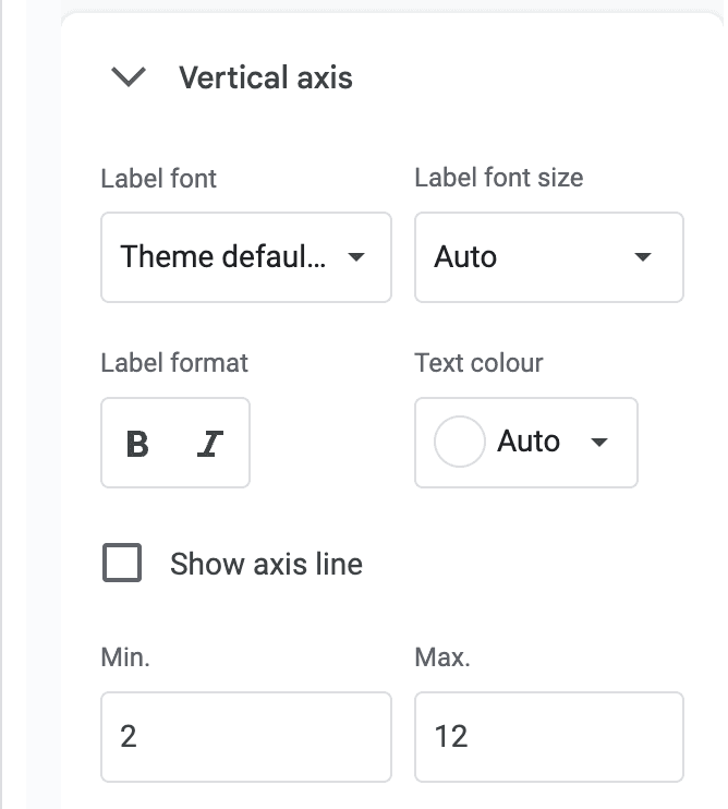 - Verander in de tab Customize – Vertical axis de waarden bij Min (2) en Max (12).