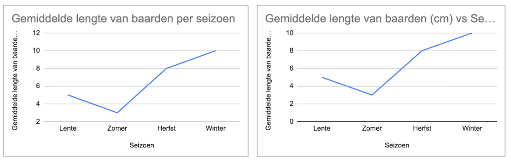 - Positioneer de charts netjes naast elkaar en vergelijk de stijl.