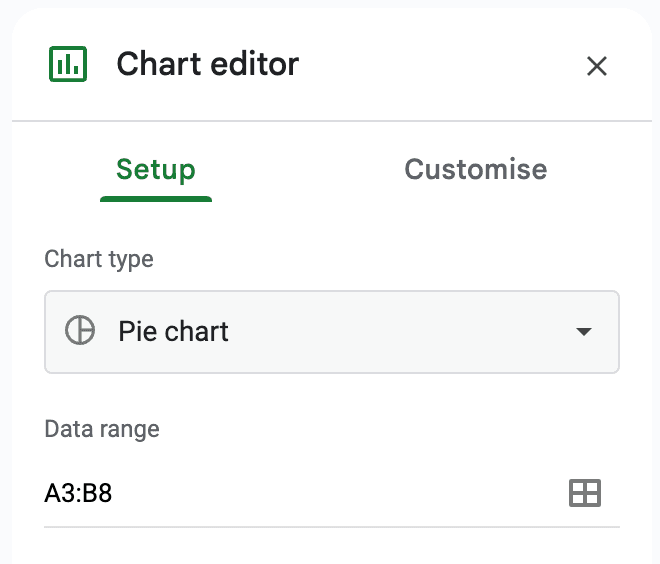- Sheets maakt een diagram van de gegevens in de geselecteerde cellen.