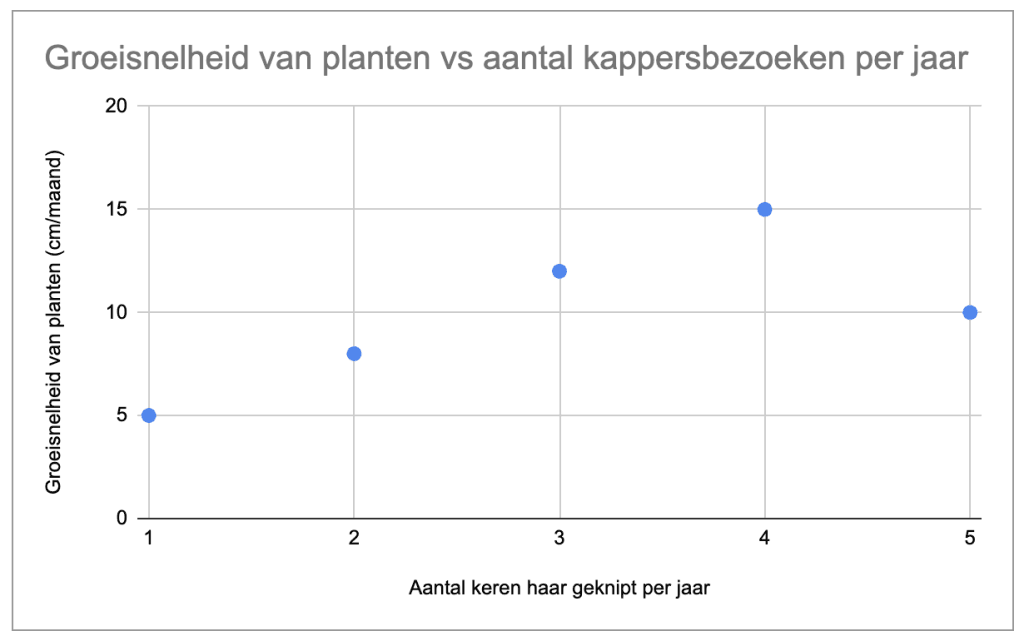 De correlatie tussen het aantal keer dat mensen hun haar knippen en de snelheid waarmee hun planten groeien