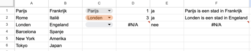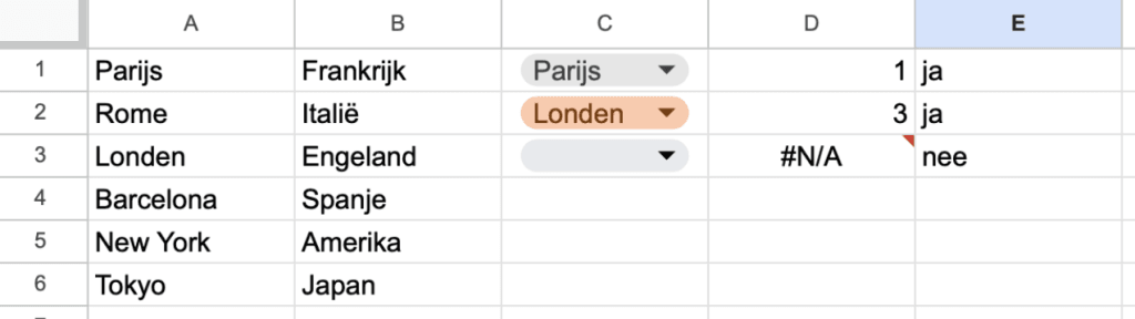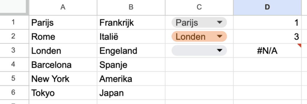 Als de waarde niet in de lijst staat, is het resultaat #N/A (not available).