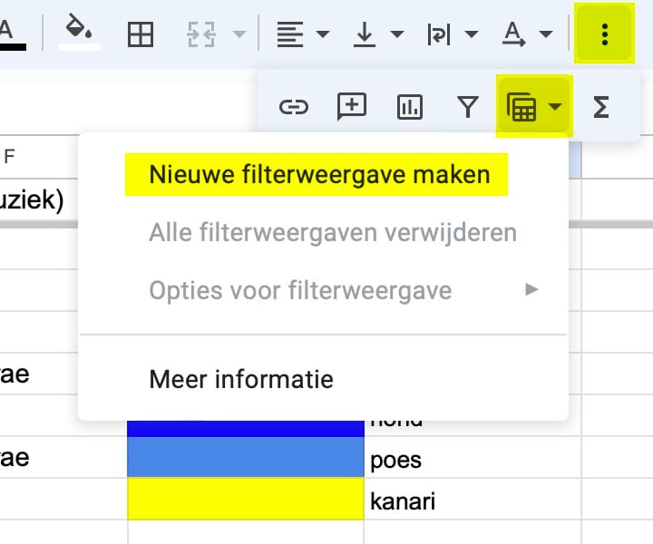 Kies in het menu: Data – Filterviewscreate new filter view of klik op het icoontje Filter views.
