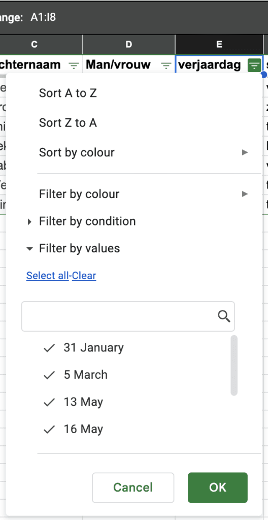 De sorteer- en filteroptie zijn een handig hulpmiddel bij het analyseren van data.
