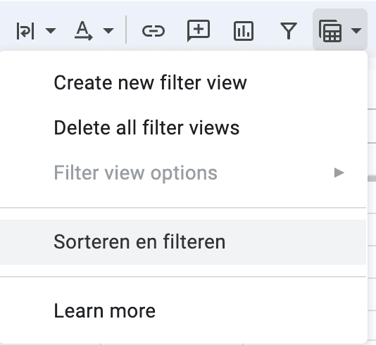 Je ziet dat er een keuzemogelijkheid voor Sorteren en filteren is.