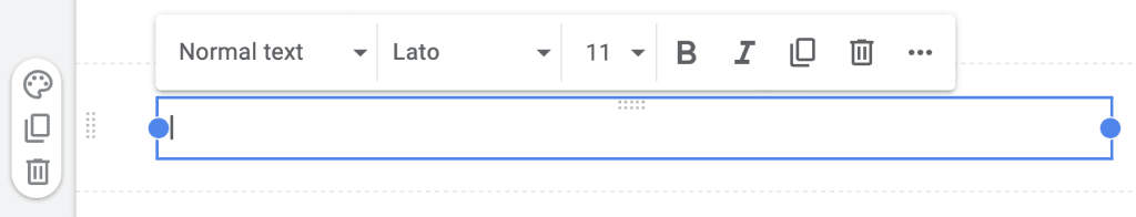 - Met de blauwe stippen links en rechts op de rand van het tekstveld kun je de breedte vaan het veld veranderen.
