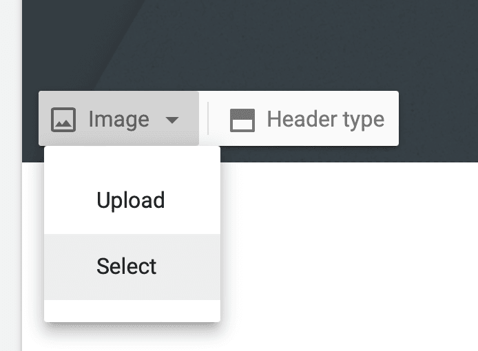 - Linksonder in de header zie je twee knoppen: Image en Header type.