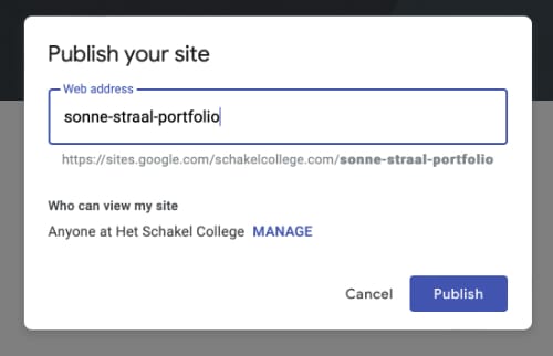 Nog wat verder naar beneden, onder Who can see my site moet staan dat iedereen op Het Schakel College jouw website mag zien.