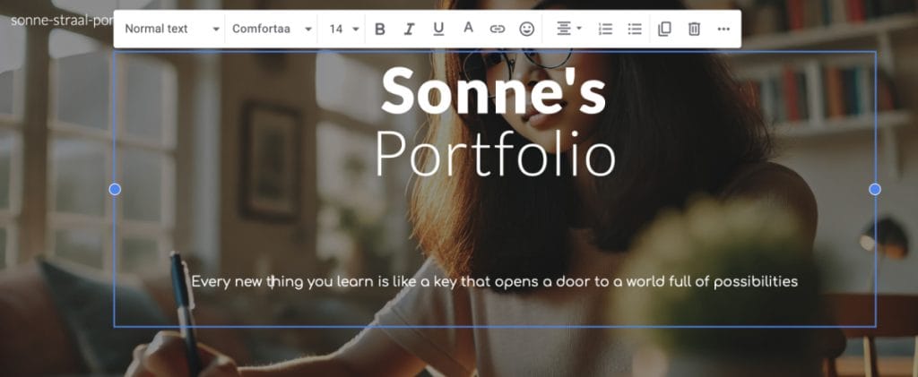 Alle tekst die je op je portfolio website plaatst is in het Engels.