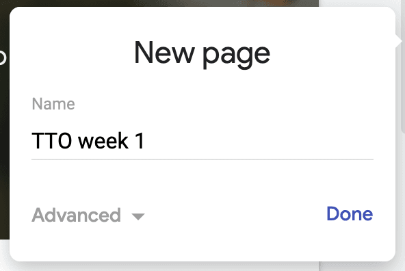 - Noem de nieuwe pagina TTO week 1 en klik op Done.